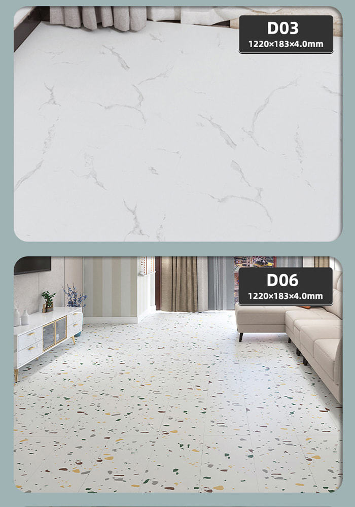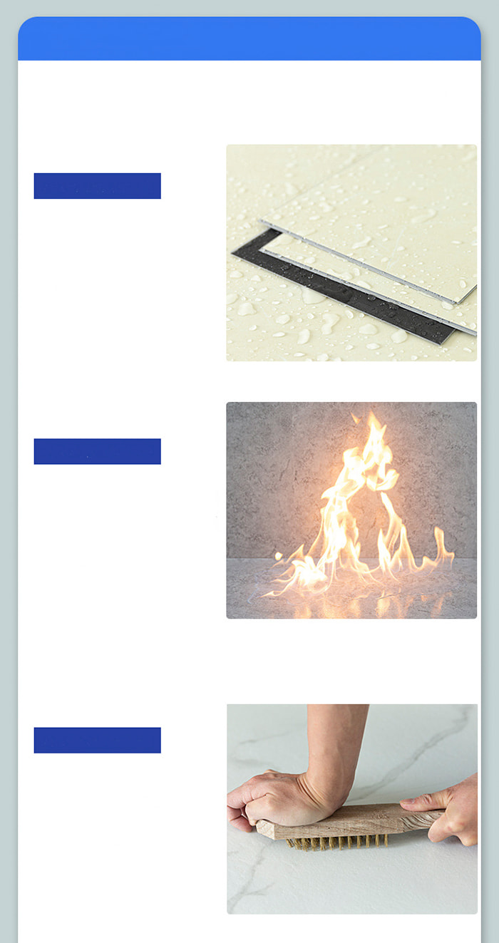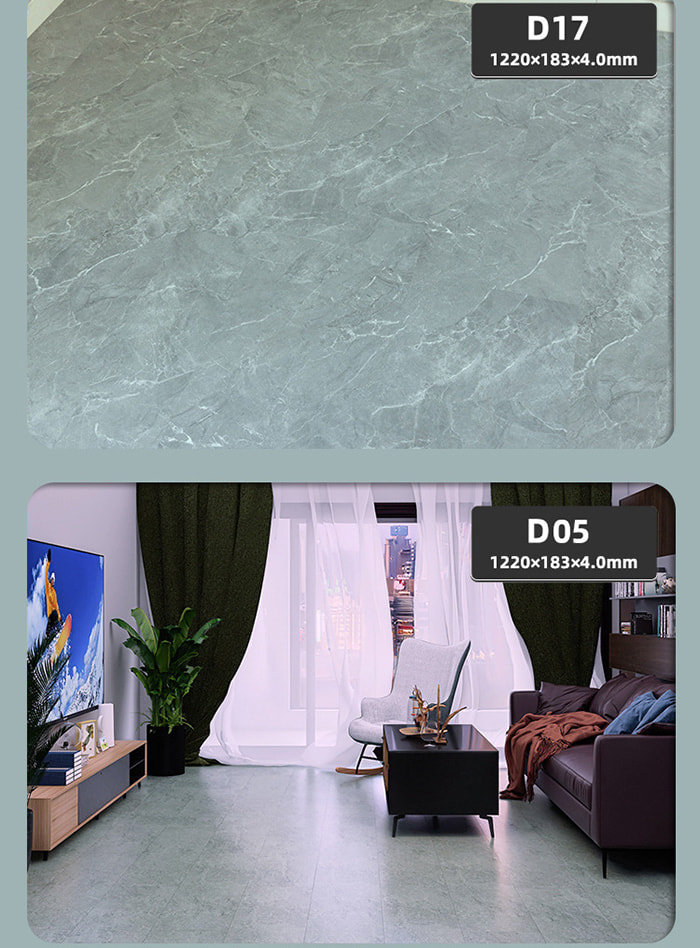 Protuklizna izvedba: Veća protuklizna učinkovitost pri izlaganju vodi, pogodna za javna mjesta s visokim sigurnosnim zahtjevima. Učinak zvučne izolacije: dobar učinak zvučne izolacije, koji može smanjiti korake.