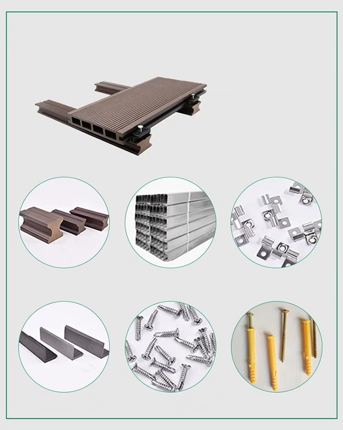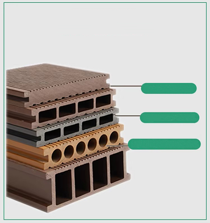 Miješanje supstrata Drvena vlakna (50-60%) PVC smola (30-40%) antikorozivni sloj ugljičnih vlakana (5-10%), dodavanje usporivača plamena aluminij hidroksida za poboljšanje na stupanj A2.