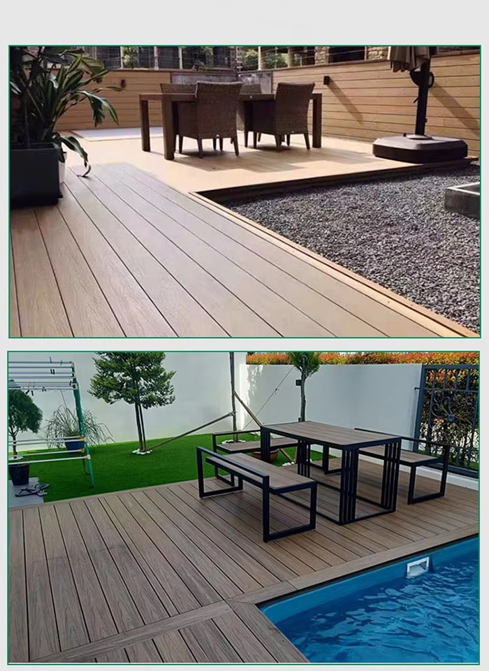 Materijal Drvena vlakna/bambusova vlakna PVC smola usporivač plamena/prah kalcijevog karbonata (po izboru) površinski premaz (UV/prijenos drvenog zrna)