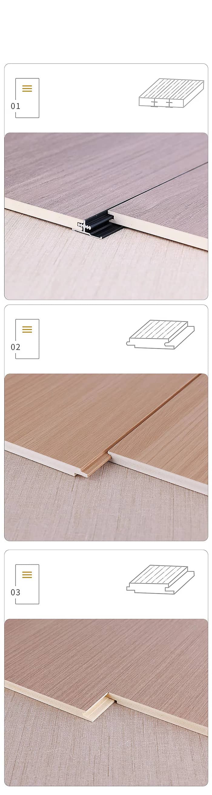 (3) Proces gradnje Obrada zidova: Potrebno je izravnavanje, a za ugradnju se mogu koristiti drvene kobilice ili izravno lijepljenje. Metoda spajanja: Koristite utore za majku i dijete i metalne trake za zatvaranje za besprijekorno spajanje. Obrada zatvaranja: unutarnji i vanjski kutovi mogu biti zakrivljeni ili se mogu koristiti trake za zatvaranje profila za optimizaciju estetike8.