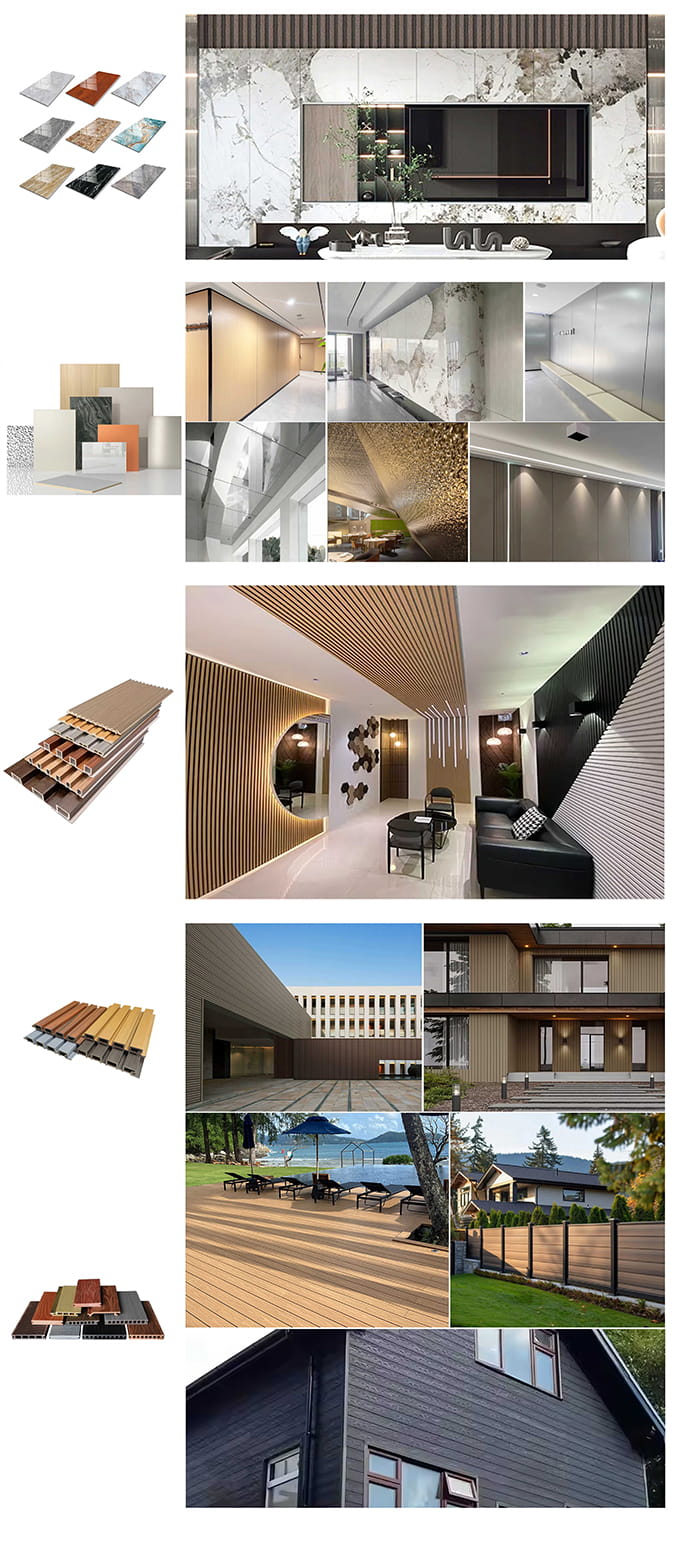 Naši glavni proizvodi uključuju: PVC stropne ploče, PVC zidne ploče, WPC zidne ploče, foliju za vruće utiskivanje, PVC foliju za laminiranje, SPC podove, WPC decking i druge srodne proizvode. Naša godišnja prodaja može doseći i do 35 milijuna USD.