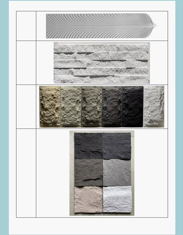 PU zidna ploča je polimerni materijal na bazi poliuretana (PU). Površina je obično prekrivena premazom visoke čvrstoće, koji ima karakteristike otpornosti na kiselinu, zaštitu od sunca i UV otpornost. Može se izraditi prema teksturi pravog kamena, drva itd. i posebnoj izradi, s realističnom i nježnom teksturom. PU zidna ploča se uglavnom koristi za ukrašavanje zidova i može se primijeniti na unutarnje i vanjske zidove zgrada.