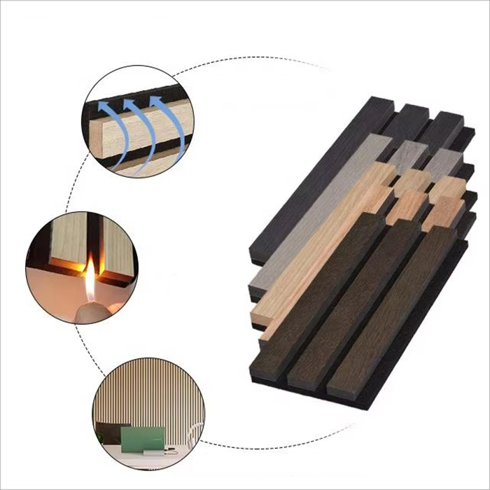 WPC ploča za upijanje zvuka je ekološki prihvatljiv dekorativni materijal koji upija zvuk izrađen od kompozitnih materijala drvo-plastika. Usvaja tehnologiju obrade ekološkog drva, s utorima na prednjoj strani i rupama na stražnjoj strani osnovnog materijala kako bi se oblikovala rezonantna struktura koja apsorbira zvuk. Ovaj dizajn čini WPC ploču za upijanje zvuka ne samo dobrim performansama apsorpcije zvuka, već ima i vodootpornost, otpornost na vlagu, otpornost na insekte, otpornost na termite i druge karakteristike. Njegova površina može biti ukrašena prirodnim drvenim vlaknima ili raznim bojama za pružanje bogatih vizualnih efekata.