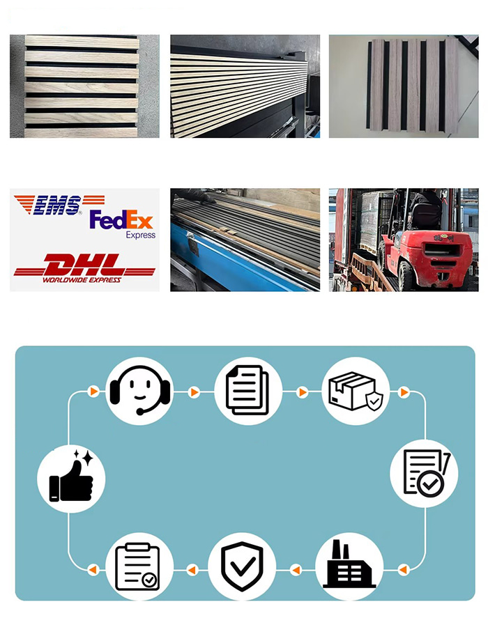Provjera kvalitete: Tijekom proizvodnog procesa, WPC ploče za upijanje zvuka strogo se kontroliraju kvalitetu, uključujući točnost dimenzija, ravnost, gustoću, otpornost na vatru, zaštitu okoliša i druge aspekte.
